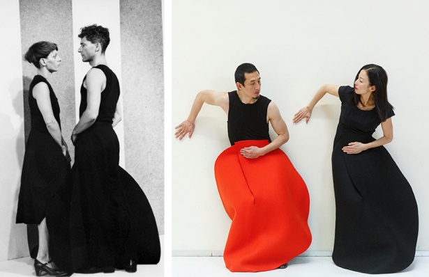 Starting point were the costume designs of the British visual artist Jonathan Baldock, inspired by such diverse references and influences as Chinese opera costumes, medieval monks' cowls or the abstraction of European modernism.
